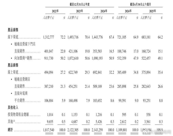 2022年至2024年及2025年上半年,八马茶业按销售渠道划分的收入明细